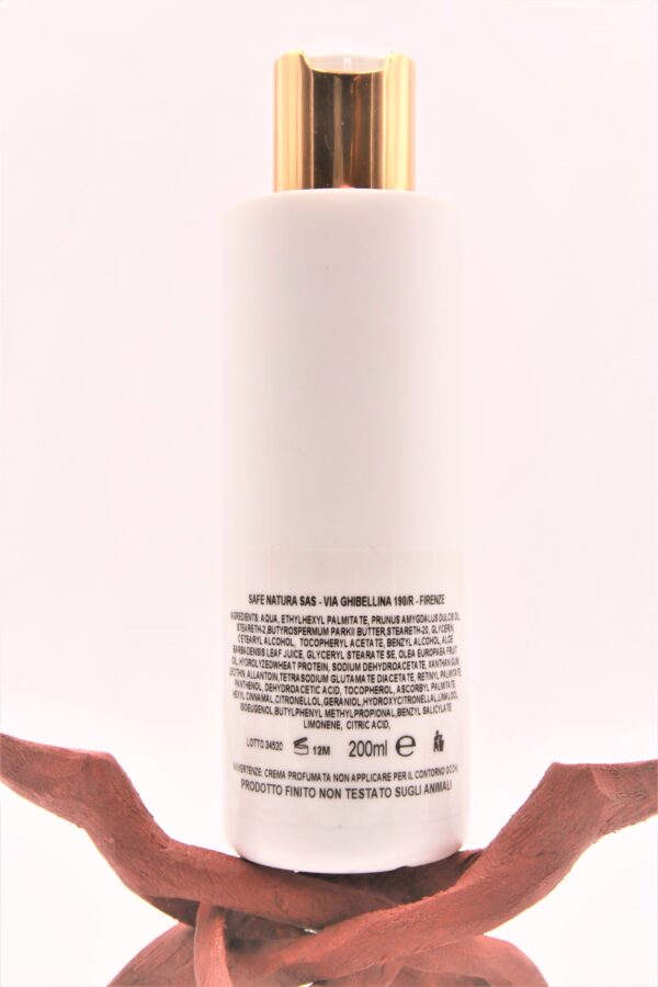 Method of use: apply a thin layer of the cream to the entire treatment area and massage until completely absorbed. This delicate body cream can also be used several times a day. After the treatment your skin will be pleasantly scented with floral notes of Rose, Sicilian Jasmine, Florentine Iris and Violet Leaf.